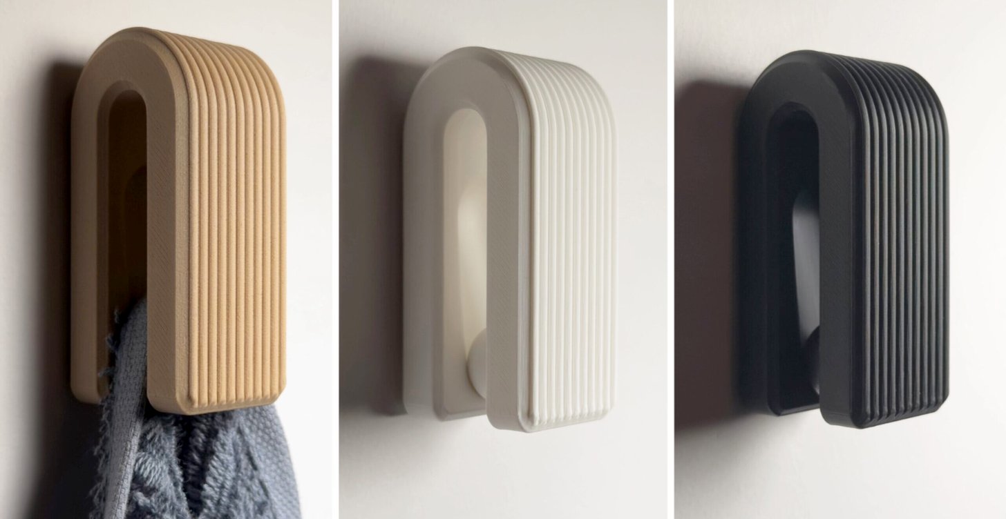 O design é totalmente do tipo print-in-place, o que significa que o mecanismo da esfera móvel é impresso pronto — não é necessário montar nada! O gancho é fixado com fita dupla face ou dois parafusos e apresenta uma superfície texturizada e com nervuras que parece muito mais cara do que alguns centavos de filamento. Há diversas variações de design disponíveis.