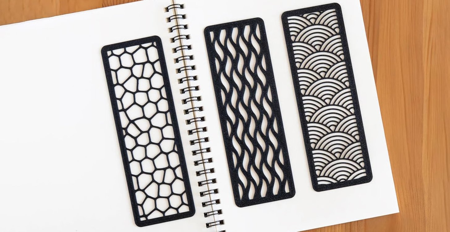 Elegantes, rápidos e satisfatoriamente simples: esses marcadores de página com linhas estilizadas trazem um toque moderno e nítido sem tomar muito tempo de impressão. Eles são leves, imprimem rapidamente e têm uma aparência ainda mais elegante se você ativar o recurso de passar a ferro em seu slicer para obter uma parte superior brilhante. Use camadas de 0,08 mm com uma base de 0,16 mm, com preenchimento de 100%.